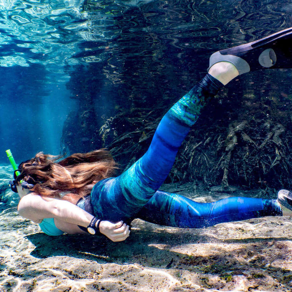 They feel so smooth/soft, and even though I haven't swam with them yet, I believe they'll add some warmth. I really like the pockets! I also love how long the leggings are, since so many leggings brands end up looking like high-waters. You can see in the pictures that I folded one leg up to where it ends at my ankle, showing how much extra fabric there is available.
