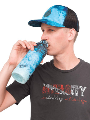 Top button, visor brim and snapback: 100% recycled polyethylene