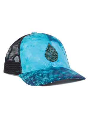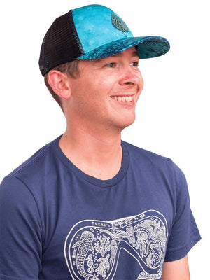 Body fabric, trucker mesh, sweatband fabric, inside taping and thread (stitching, embroidery): 100% recycled polyester