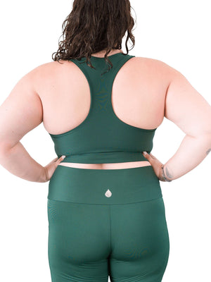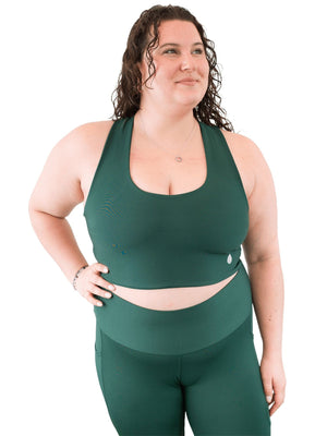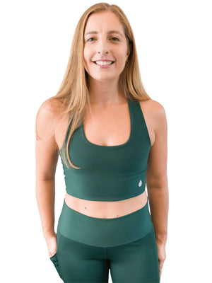 A racerback crop top with a seamless design and mid-level support. Versatile and multifunctional for use as a swim top, yoga top, workout sports bra, water sports top, or just for all-day comfort.