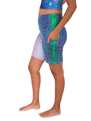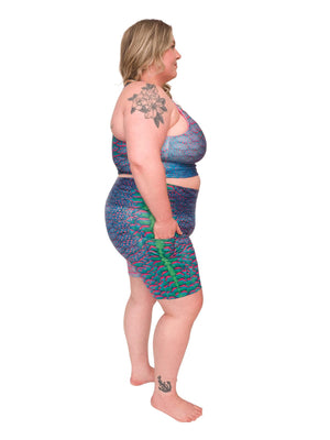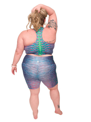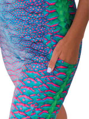 The colors and pattern are so vibrant, and the shorts are a great solution to the question "what do I wear under my wetsuit for open water swims"? This is the answer! They don't ride up or chafe at all and I feel confident wearing them. When it is finally warm enough to shed the wetsuit, these shorts will swim fine on their own (with the matching parrotfish top!). It's so great to know that the real parrotfish out there will benefit from the proceeds from my purchase. Thank you, Waterlust!!
