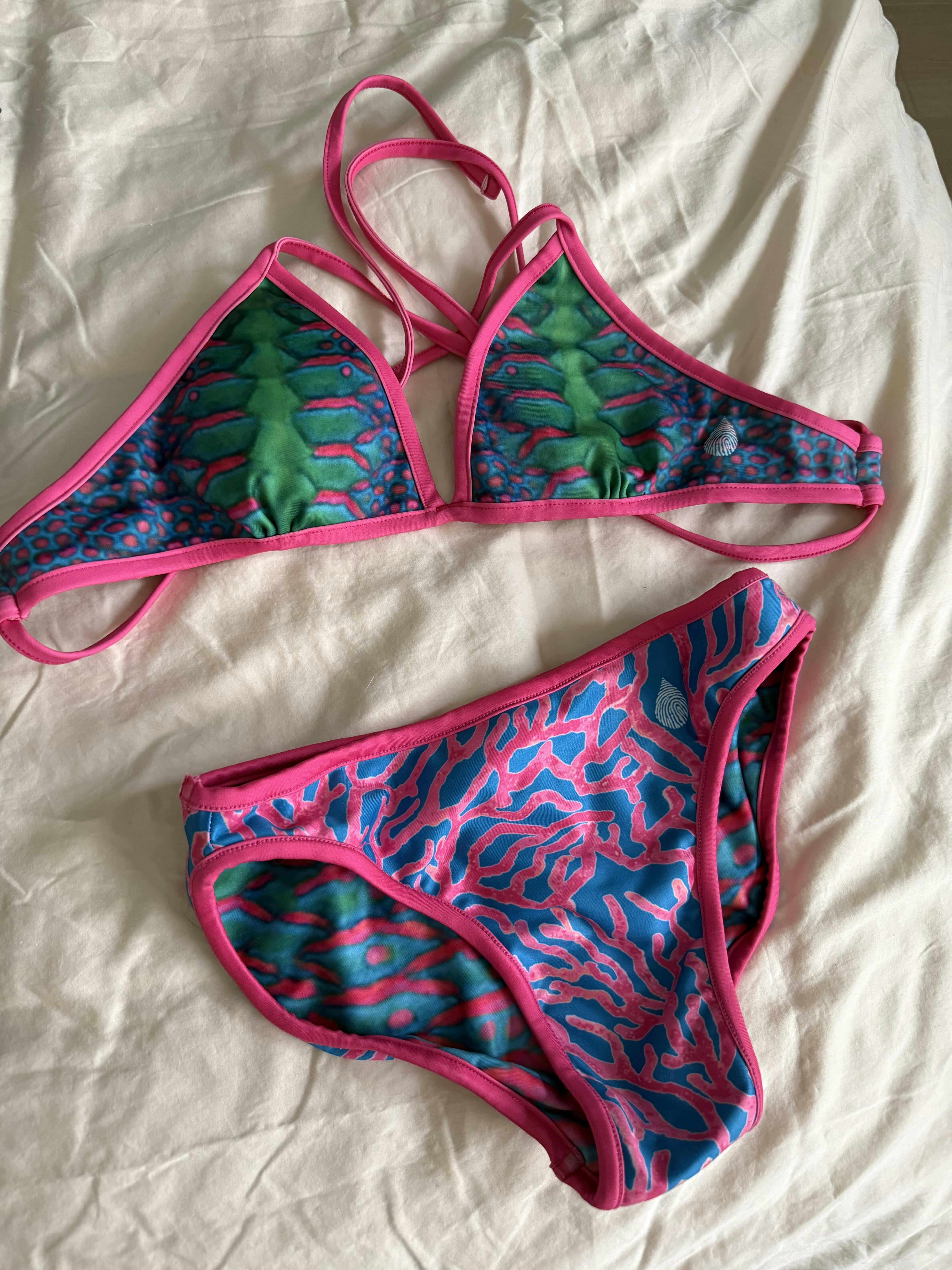 I was on the beach yesterday and the bikini top and bottoms were secure as I jumped in the waves. The parrot fish bottom and top will be awesome to paddle board in. I love that it’s two bikinis in one! Love the colors!