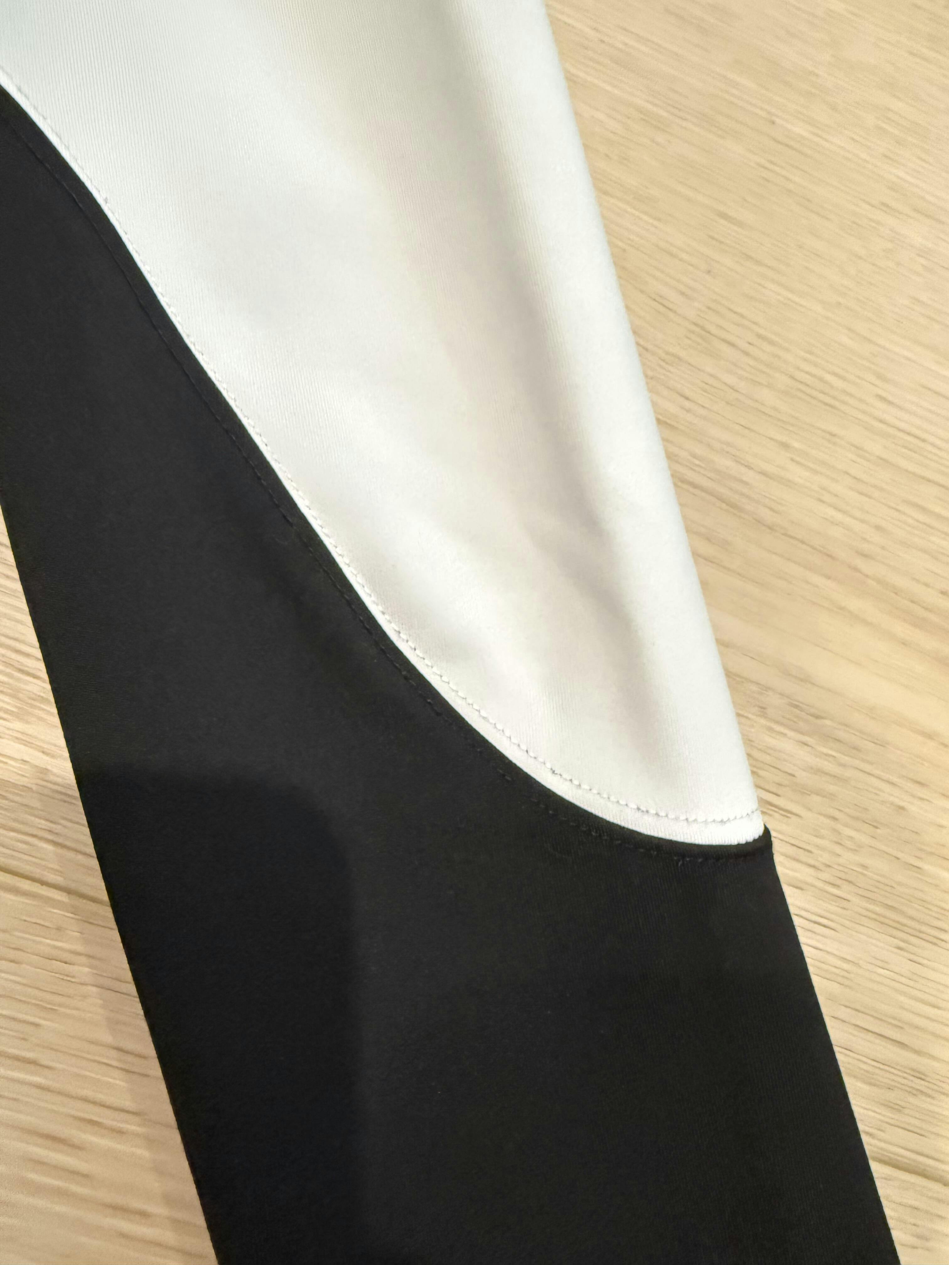Made from two variations of our signature fabric. The white fabric is what we use for all our other leggings, as a base that we typically print on. The black fabric is the same but with one difference - it's made from not only recycled plastic bottles but also old clothing! Leggings and other items are recycled once more and given a 3rd (or more!) life, then dyed black.