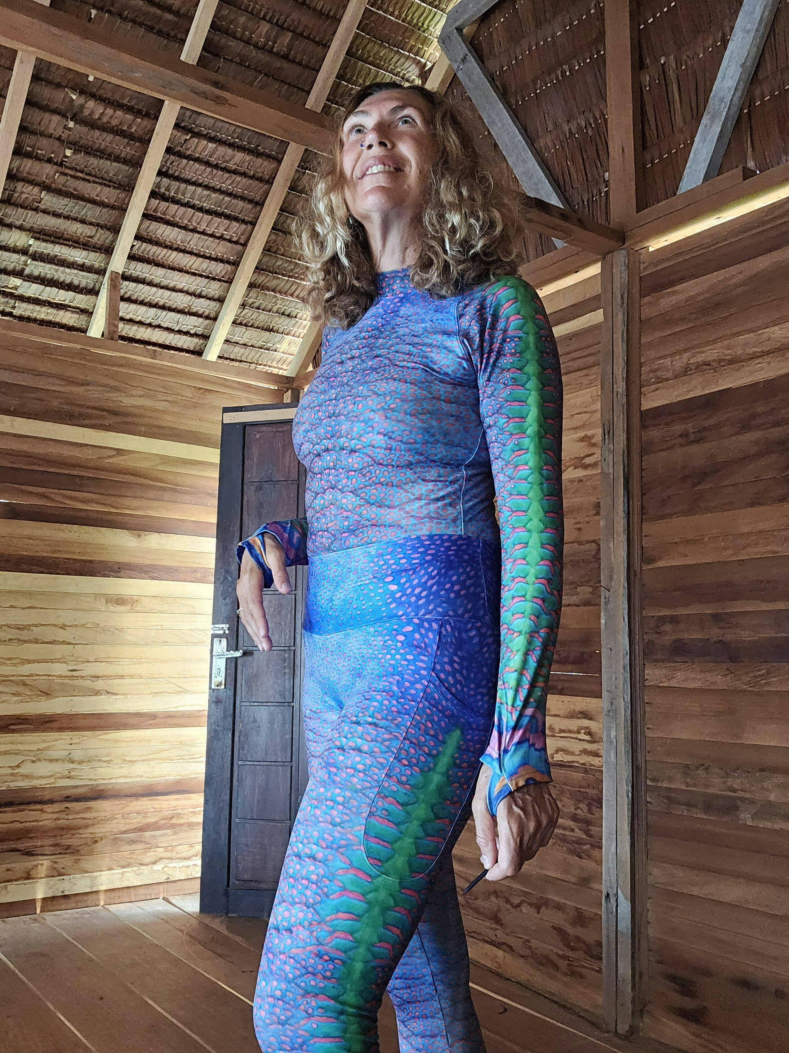 My wetsuit slips on like butter. In tropical waters I dive with just the leggings and sun suit. I'm looking forward to the day that the parrot fish finally accept me into their school! 😂