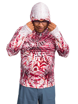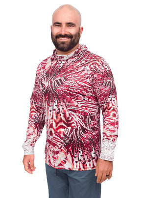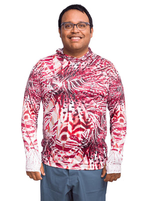 I hove my lionfish rashguard however I had to cut the hood off. It traps the air I breathe out and then makes the hood float. My shirt ends up strangling me. Suggest a rashguard without the hood.