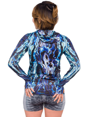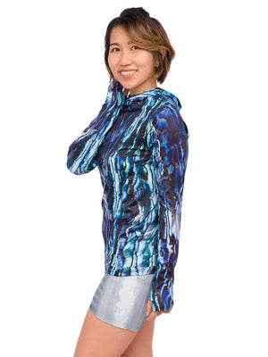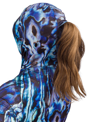 Known for the psychedelic patterns found on their inner shells, abalone (sea snails) feature unique colors that are created by nacre, hexagonal platelets of aragonite also known commonly as “mother of pearl” and found on a variety of mollusks. Our print features the piercing blues of New Zealand’s Pāua, the Māori name given to three species Haliotis iris, Haliotis australis and Haliotis virginea.