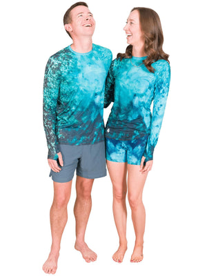 Our well-known sun shirts, minus the hood. Sun shirt… rashguard… whatever you want to call them, these are super lightweight and quick-dry to help you stay cool and protected from the sun no matter the activity. Dive, surf, swim, adventure, repeat.