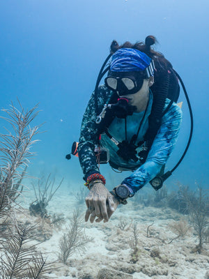 I have worn lots of different sun protective tops over the years. I think I just found my new favorite! Every detail of this top is fabulous!! (Never again will I have to worry if there is an awkward jellyfish floating above my head while diving. LOL) As a FL cavern diver, I will wear this print proudly. Thank you, Waterlust! You have another winner on your hands (or fins!).