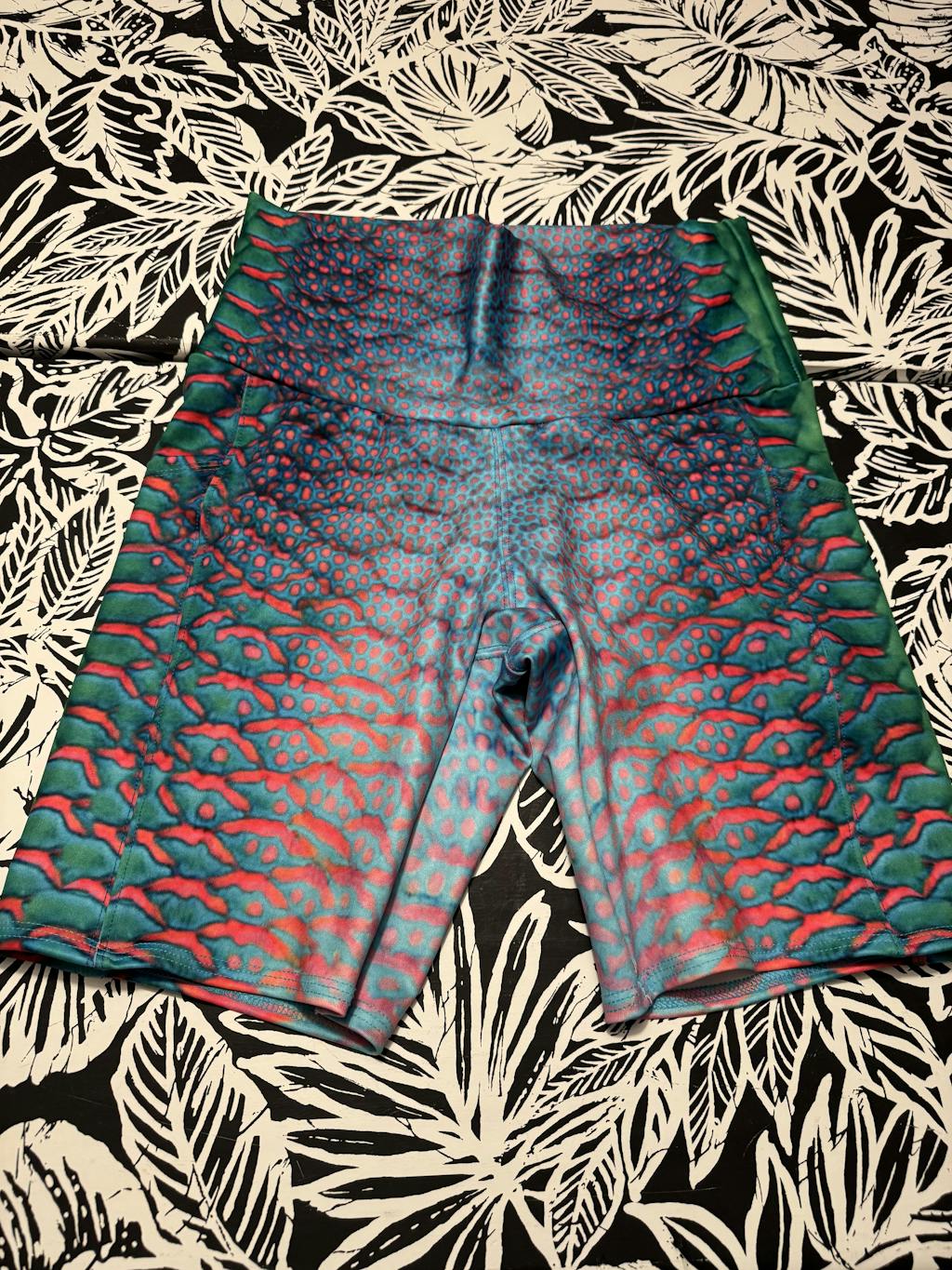 I bought these with the idea of swimming laps in the 8” shorts and the matching reversible top (this review is mainly for others with the same idea). While they are high quality and I love the pattern, neither piece has the structural support necessary for swimming. Specifically, the waistband rolls down and the top also catches water and makes it feel like my girls might spill out. I will use them for other purposes but am back to the drawing board for swimming attire!