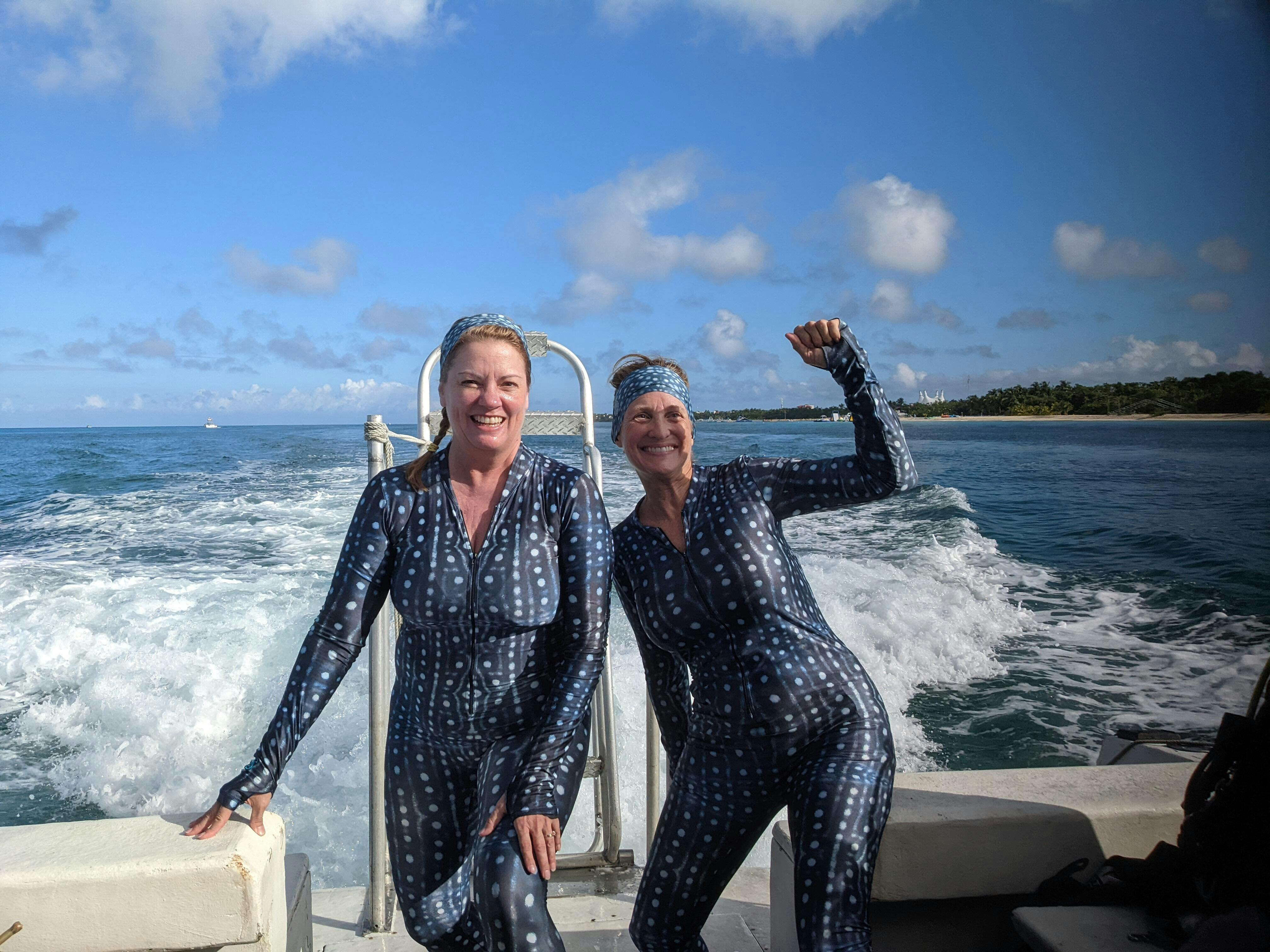 Designed for diving, snorkeling, swimming, surfing, kiting, winging... you get the idea. If the ocean is your happy place but you recognize the importance of skin protection, these suits are for you! Versatile too - wear it alone or as a base layer to help you easily slip in and out of your wetsuit on those colder days.