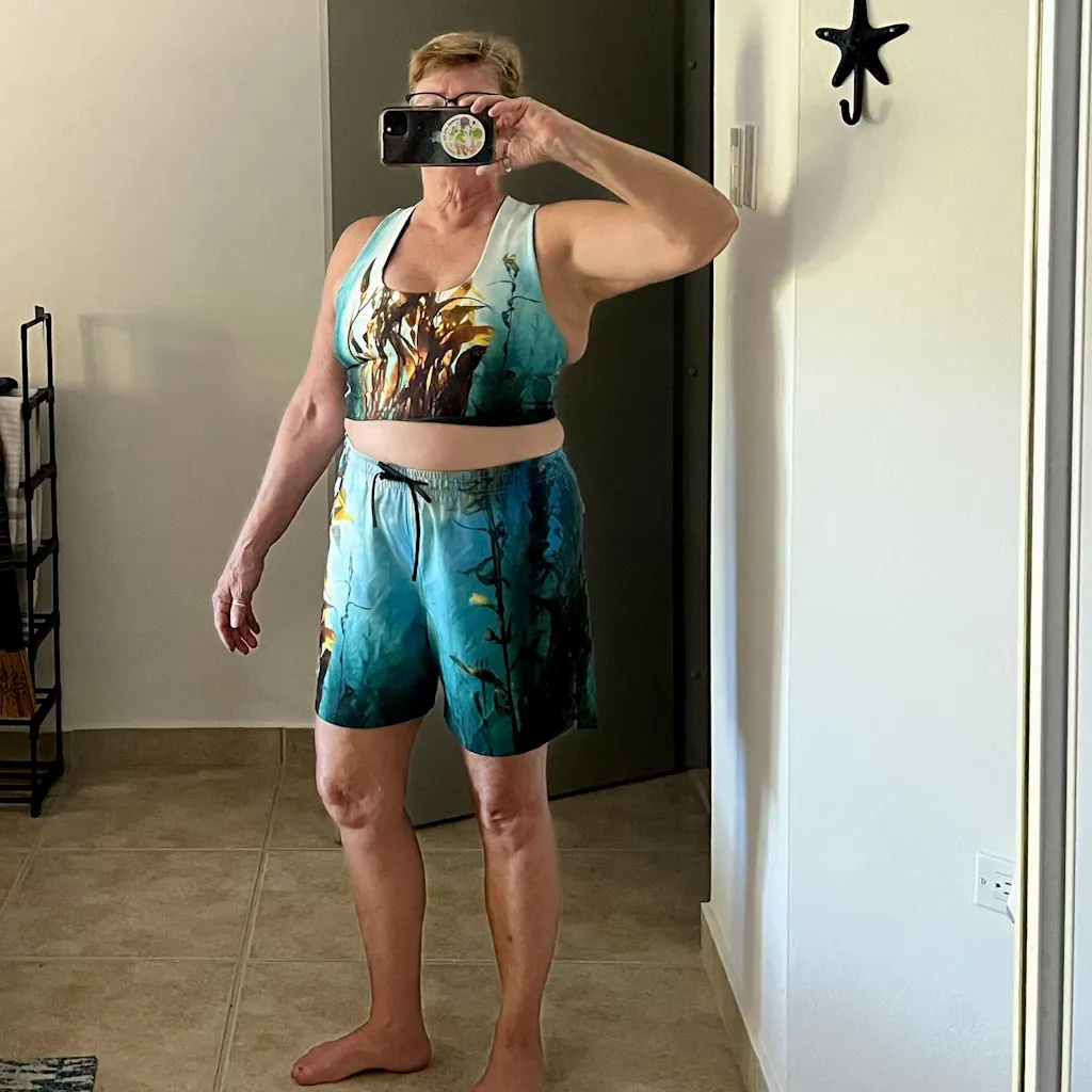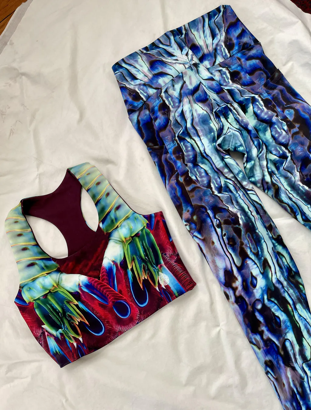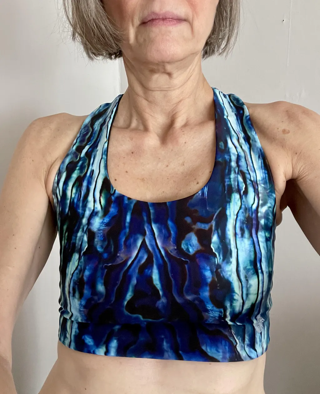 The mantis shrimp print is my new favorite. Comfortable, vibrant and I love that it’s reversible. I can’t wait to get the leggings for a matching set. I’m a 34 B and the small is perfect.