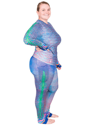 The crew neck is the same material as our hooded sunshirt, which we made as a lighter material with all the UPF protection. However, our cropped rashguards are made out of the same material as the leggings, so that could be another alternative! Shoot us an email at hello@waterlust.com, and we can set either of these options up for you.